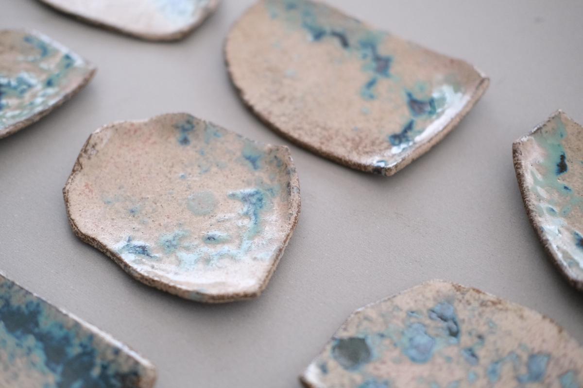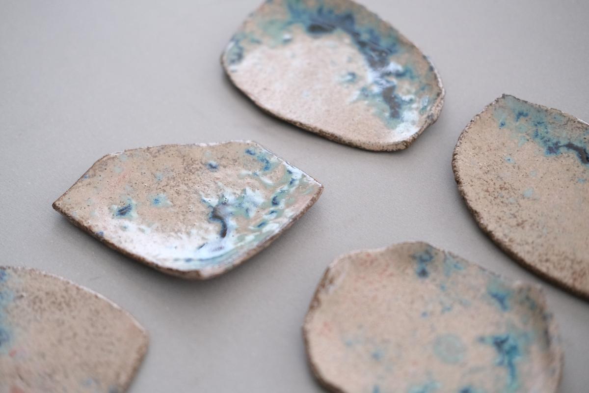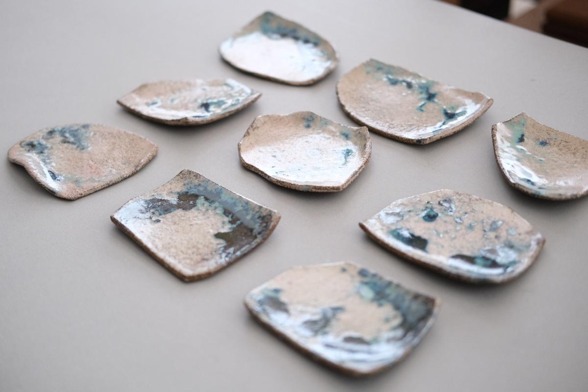 陶片ではなく、かけらをイメージして作っている器です。型はなく、一点一点手で形作り、製作しています。