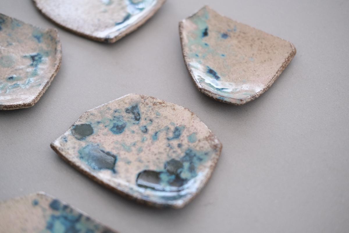 豆豆皿の製作をお願いしている、いざきあつしさんのかけら皿。